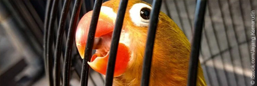 Hundreds were imprisoned in dingy, filthy cages. Others were stuffed into cloth bags. And many were dead when the Delhi Forest Department, acting on a complaint from PETA India, swept into the Kabutar Market outside Delhi and rescued 1,000 Alexandrine parakeets, finches, and other birds from its shops. |